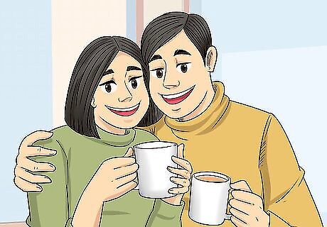 Drink hot chocolate. Hot chocolate is a classic winter drink. Hold up two mugs of hot chocolate for a few photos. You can use your favorite mugs, or use mugs with you and your partner's initials on them.