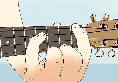 Try playing both the G and C strings with your middle finger. If you're having a hard time getting 3 fingers onto the G, C, and E strings, you can also try fretting the G and C strings at the fourth fret with your middle finger. Then fret the E string at the fourth fret with your ring finger. Your index finger frets the A string on the second fret. This can be a good option if your fingers aren't strong enough to barre the 3 strings. However, this method does take some practice.
