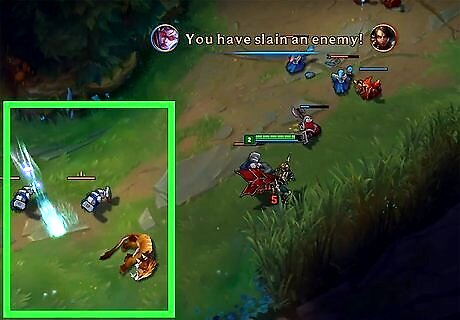 Kite away from enemies. While Vayne can put out a lot of damage, she can't take a lot of damage, so you want to avoid getting hit. Draven and Caitlyn are deadly against Vayne, so you'll want to avoid these champions. You definitely do not want to try fighting Zed, since he will be able to kill your character quickly. Use Tumble and Final Hour together to get away from enemies. When used together, Vayne will become invisible for a short amount of time.