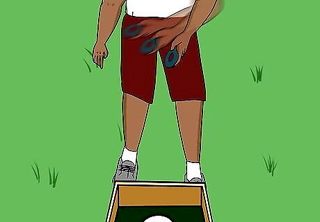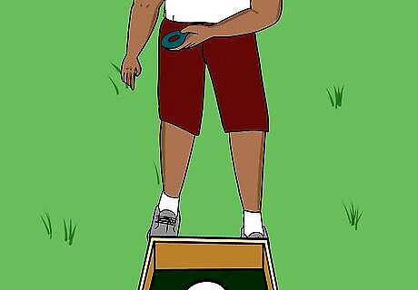 Stand on one side of the box. Pick either the left or right side of the box and stand there. Have your opponent stand on the other side of the box. During your turn, don’t step past the front edge of the box or else that throw won’t count for the round. If you’re playing a 4-player game, the other member of your team will stand behind the box on the opposite side.
