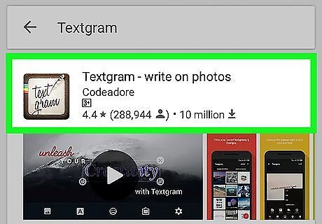 Tap the Textgram app in the search results. It should be at the top of the list. Tapping will open the app details page.