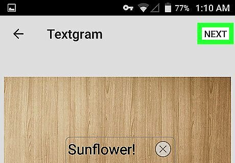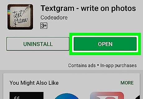 Tap the green OPEN button. When the installation is complete, the green INSTALL button will be replaced by an OPEN button. It will quit the Play Store, and switch you to the Textgram app. If you're prompted to allow the Textgram app access to your media files, tap ALLOW.