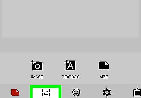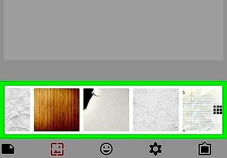 Select a background image. Browse the stock background images at the bottom, and tap the image you would like to use. Alternatively, tap the camera icon here to add an image from your gallery, or the eye dropper icon to select a solid color as your background.