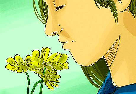 Be mindful. Mindfulness is a life-affirming practice that enables you to fully focus on the thoughts, feelings, sensations, and other qualities of the present moment. In life, you are frequently rushing off to do one thing or another, so much that you are rarely aware of what you're doing right now. Mindfulness is a way to slow down and become centered, bringing about a sense of peace and gratitude for the here and now. The more you consciously practice this, the more it will become a habit. You may want to consider setting alarms and reminders throughout your day to check in with yourself and to remember to notice your breath and feel your feet on the ground. You can practice mindfulness in virtually any situation. Simply take note of all that is going on around you in the present moment rather than letting your thoughts wander to the past or future. As you are brushing your teeth in the morning, notice the taste of the toothpaste on your tongue, watch yourself in the mirror, hear the sound of the bristles as they cleanse your teeth. Become fully present in the moment. If you catch yourself thinking about something else, bring your attention back to the process of tooth-brushing. Mindfulness exercises can include breathing, listening to music, getting some fresh air, and gentle stretching.