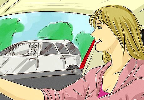 Avoid or ignore tailgaters. If you're being tailgated, it's best to move to another lane and let them by. If you can’t switch lanes or are on a single lane road, give yourself extra room in front of you to make up for the lack of room behind, then ignore the tailgater. Just imagine that your mirrors are set so that you cannot see them at all. Don't completely ignore what's going on behind you, though. Remain aware of your surroundings on all sides; just block out the tailgater. Also remember that, although unlikely, the person behind you could be taking someone to the hospital or have another emergency. It's always preferable to let tailgaters through freely. It keeps them off of you, and it helps prevent pent up road rage in others.
