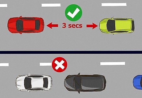 Don't follow too closely. Leave about ten car lengths in front of you on the freeway and you will almost never need to hit the brakes. Alternatively, you can count out the time between when the car in front of you passes a lane marker, and when you pass it — three seconds should be the minimum interval. The increased risk of accidents is a major reason why “drafting” behind vehicles (while hypermiling) is a bad idea.