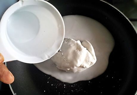 Place the starch in a non stick frying pan. Add water to it and melt the starch within by kneading it with your hands until it disintegrates and forms part of the liquid.