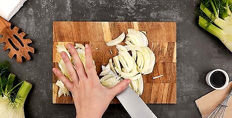 Cut the bulb in half. Remove the tough core from the center of each piece.
