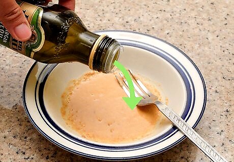 Mix the cheese and lemon juice. Add ¼ cup (25 g) of finely grated Parmesan cheese and 1 ½ tablespoons (22 ½ ml) of fresh lemon juice to a small bowl. Stir the two together until they’re completely blended. You can substitute grated Pecorino Romano, Grana Padano, or Asiago cheese for the Parmesan if you prefer.