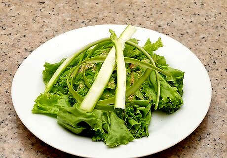Add the shaved asparagus to a salad. While the asparagus shavings make a delicious salad on their own, you can also mix them into whatever salad you like. They pair especially well with avocado and mint for a tasty summer salad. Shaved asparagus also mixes well with grain salads, such as barley, quinoa, farro, or tabbouleh.