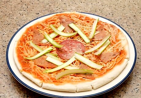 Top pizza or focaccia with shaved asparagus. Shaved asparagus makes a tasty, unique topping for pizza. Add it to the dough on top of the sauce and then cover with cheese before baking it in the oven. You can also use the shaved asparagus to replace lettuce or other greens on a focaccia. Shaved asparagus is also makes a tasty replacement for lettuce or other greens on a sandwich. You can also use asparagus as a topping for simple toast. Spread a little ricotta or mashed avocado on the toasted bread, and add a few curls of asparagus to finish it off.