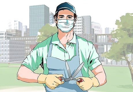 Limit gardening and lawn work, if you are immunocompromised. Another major activity that puts immunocompromised people at risk of coming into contact with aspergillus is gardening and lawn work. As a common type of mold, aspergillus is found all around us in nature. If you have a severely weakened immune system as a result of certain types of illnesses or medications, consider limiting outdoor work so you can prevent aspergillosis. Watch out for decaying vegetation when working in your garden. Consider having a lawn care company mow your lawn and take care of your landscaping. Exercise extra care if you have a compost pile in your backyard. Compost piles are excellent habitats for aspergillus. Plan gardening and lawn work for cool and low humidity days.