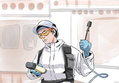 Use a dust mask. If you need to be in a moldy building or in high risk areas outdoors, you should use a dust mask. Wearing a dust mask can drastically cut down on exposure to aspergillus spores that may be in the air or put into the air by human activity. As a result, anyone looking to limit exposure to aspergillus should wear a dusk mask. Dusk masks can be purchased at local hardware or big box stores. Some masks offer more protection than others. HEPA masks are perhaps the best solution, but they can be pricey. Other less expensive masks still offer a level of protection. Masks range in cost from less than a dollar to twenty or thirty for high-end HEPA masks. To use a dusk mask, carefully put it over your mouth and nose. Secure any nose clamp or other methods of fastening and closing the mask. Make sure the mask is snug on your face and you can breath easily.