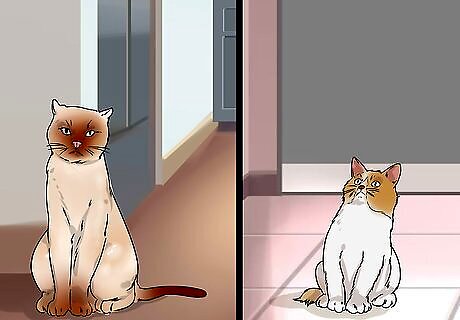 Place additional perches around the house. Use perches and cat trees to create vertical space. Vertical space will help your cats feel as if there is more room in the house, making them less likely to engage in a fight. Vertical space will also help your cats feel more safe and secure, since it provides them with a place to escape dangerous or threatening situations.
