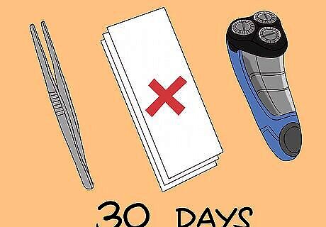 Stop plucking, waxing, and shaving for 30 days after an outbreak. If you have anew folliculitis outbreak on an area that you have recently shaved, waxed, or plucked with tweezers, do not repeat this hair removal method for at least 30 days. Doing it again too soon can bring on another outbreak or make the current one worse. For example, if you wax your legs and have a folliculitis outbreak, don't wax or use another hair removal technique again for at least 30 days. Allow the hair to grow back.Tip: If waxing or shaving your legs causes folliculitis, consider using a depilatory or hair removal cream after 30 days. This may be a less irritating option than waxing or shaving your legs.