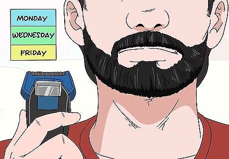 Shave less often or grow a beard if you have thick facial hair. People who have curly or coarse hair are more susceptible to folliculitis. You may get it on your face or legs as a result of shaving frequently. But even if your hair is not coarse or curly, frequent shaving can cause or worsen folliculitis. Consider shaving every other day or less often. If you have coarse facial hair, you might even consider growing a beard. For example, you might shave on Mondays, Wednesdays, and Fridays only to cut back on irritation to your skin.Tip: If you decide to grow a beard, check with your employer first to see if it's allowed and also ask about any rules regarding how long your beard can be.