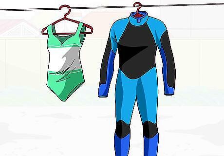 Wash and dry your bathing suit or wet suit after each use. Re-wearing a dirty bathing suit or wet suit can also cause folliculitis, so make sure that you wash your swimsuit or wet suit before you use it again. Make sure that the swimsuit or wet suit is completely dry before you put it on again. Check the care instructions on the tag for information on how to wash and dry the swimsuit or wetsuit. You may need to select a special cycle, such as the delicate cycle. If you're on vacation, you can hand wash the suit with warm water and mild soap in a bathtub or sink. Then, rinse it out well and hang it up to dry completely before you wear it again.
