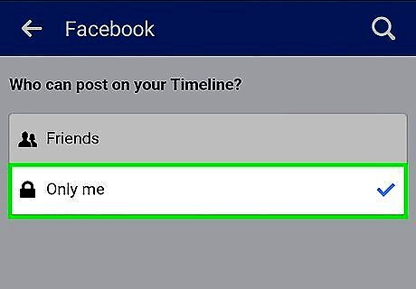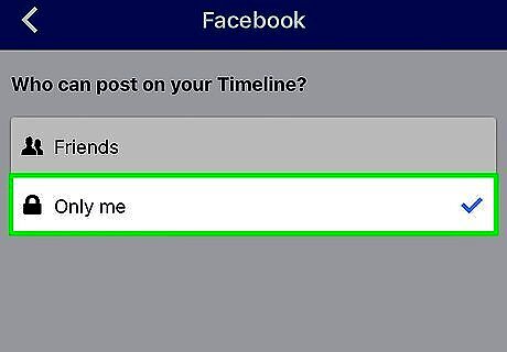 Tap Only Me. Doing so will prevent others from posting to your Facebook wall.