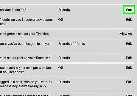 Click Edit next to "Who can post on your Timeline?" A drop-down menu will appear underneath the question.