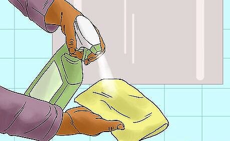 Clean bathroom mirrors and windows with glass cleaner. Spray glass cleaner on a microfiber cloth and wipe your mirror and windows from top to bottom using an “s” pattern. Afterward, buff out any streaks left behind.