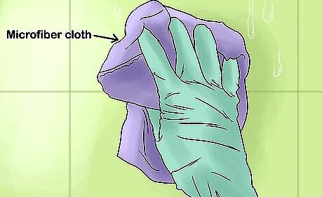 Dust your bathroom at least once per week. Since dust is a food source for mold and mold spores travel by air to settle on any surface, you must dust everything in your bathroom regularly to prevent mold growth. Use a lightly dampened microfiber cloth to wipe all surfaces, starting high and working your way down to lower areas.