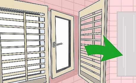 Open your bathroom windows and shut the door. Allowing fresh air to enter your bathroom will provide a better air flow and assist with drying the room more efficiently. Close the bathroom door to contain the moisture produced and open the bathroom windows while you bathe to naturally disperse it.