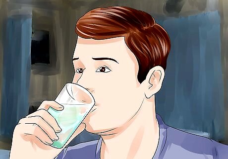 Drink a glass of water before bed. Dehydration is a big cause of bad breath; a dry mouth or a lack of saliva can lead to the development of odor-causing, volatile sulfur compounds. Drink at least eight glasses of water per day and have a glass of water before bed to clear your mouth of any lingering food particles or smelly bacteria.