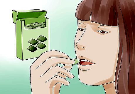 Chew sugarless gum after a meal. This will help to get the saliva flowing in your mouth and clear out any smelly bacteria. Look for gum that is 100 percent xylitol-sweetened, which not only gives you nice, fresh breath, it also reduces cavities. Be careful with breath mints. Sugar-free mints are fine for a quick fix after a meal. But they will only briefly mask the smell and don’t do anything to remove the harmful bad bacteria. Skip the sugary after-dinner mint. The sugar will sit on your teeth and make your bad breath worse.