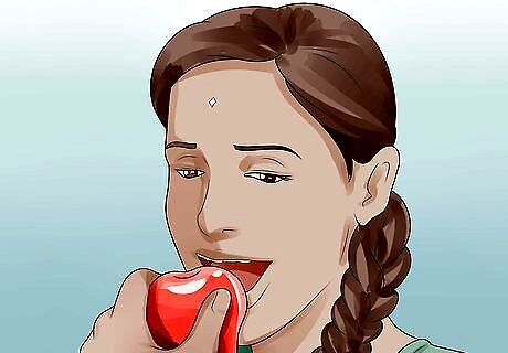 Eat fresh fruits and vegetables, such as raw carrots, celery or apples. A watery vegetable or fruit, especially raw, can help clear your mouth of debris and any lingering food that could cause bad breath. Maintaining a healthy, balanced diet and eating regular meals can also help keep the bacteria in your mouth from piling up or drying out. Certain diets, such as extreme fasting and very low-carb diets, can give you bad-smelling breath. This is due to chemicals called ketones, which are made by the breakdown of fat in your body. Breathing the ketones out of your mouth can create bad breath. So be aware of this unpleasant side effect before trying these diets.