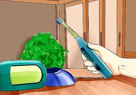 Invest in an electric toothbrush. Though a regular toothbrush will do the job if you use it regularly, electric toothbrushes are very effective at killing bad breath. Many electric toothbrushes have timers, so you know you are brushing your teeth for the right length of time to really get rid of smelly bacteria. Electric toothbrushes also distribute toothpaste in a uniform motion, which helps to remove plaque more efficiently.
