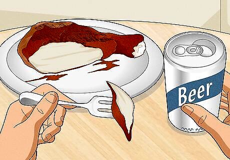 Try red wine instead of beer or hard liquor. Regardless of what you eat, red wine — in moderation — is less likely to cause weight gain than beer or hard liquor. When you drink red wine with healthy meals, it might even help you lose a little more weight. If you're making the switch from beer or hard liquor to red wine, remember to keep your drinking in moderation. Wine has a higher alcohol content than beer, so if you're used to drinking 3 beers, you might want to cut it down to 1 or 2 glasses of wine.