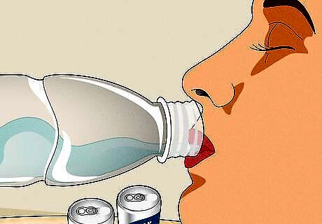 Alternate alcoholic drinks with water to stay hydrated. Alcohol has a dehydrating effect. Try to drink at least 2 glasses of water for each alcoholic drink you have. That will dilute the alcohol so you feel less inebriated and also decrease the chances you'll be hungover in the morning. Drink at least 1 glass of water before you start drinking alcohol to get yourself in the habit. Then, each time you take a sip of your alcoholic drink, follow up with a drink of water. That'll help you maintain the balance.