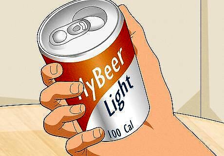 Look for low-calorie beers. Many beers, particularly wheat beers, are heavy in calories, and their calorie content often isn't listed on the label. If you're getting beer on tap at the local bar, your bartender may not know the calorie content either. Do a little homework before you go out by searching for a beer calorie counter online so you have some low-calorie options in mind. Beers that are advertised as "light" typically have around 100 calories, while some beers, such as Budweiser Select 55 (55 calories) and Miller 64 (64 calories), have under 100 calories. Lighter-colored beers, such as pale ales, IPAs, and pilsners, tend to have around 150-200 calories. Darker beers, such as stouts, black ales, and amber ales, usually have more than 200 calories. Pay attention to flavor additives as well. A peanut butter or chocolate stout, for example, will likely have more calories than a coffee stout.