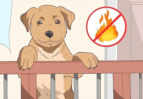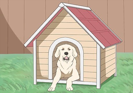 Place your dog house at a distance from the house. If your dog has a doghouse, it might head there for safety when a fire breaks out. Keep your dog’s house free of dry leaves, grass, and other flammable materials. Ensure the doghouse is placed at least 20 meters (60 feet) from your home, and is not surrounded by trees, logs, or other flammable materials.