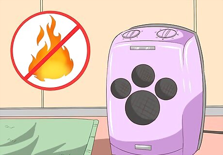 Use child and pet-safe heaters. These are heaters that turn off automatically when they are knocked over. Normal heaters, by contrast, stay on even if they’ve overturned. If your pet gets rambunctious and accidentally knocks over a heater, it could easily heat your carpet or clothing to the point of combustion.