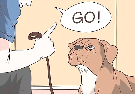 Practice a fire drill with your pets. After developing a fire drill for your home, practice the escape route with your pet frequently. Use a simple keyword your pet can associate with the fire drill. For instance, you might say “Go, go go!” to your pet to indicate it’s time to evacuate. Then, put your pet on a leash and calmly walk them through the fire drill. Don’t panic when practicing (or actually performing) the fire drill or your pet will be scared. A scared pet will have trouble remembering where to go during the evacuation procedure and could try to escape or run back into the house. Practice the fire escape frequently to ensure your pet doesn’t forget it. Reward your pet with a treat after it successfully practices the fire drill with you. Dogs are the most easily trained pets, and most likely to respond to and retain fire drill training.