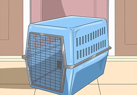 Place crates near your home’s entrance. When a fire starts and smoke fills your home, your pet might be scared and confused. Pets often associate their crates with safety, and retreat there when a disaster strikes. If your pets are already in their crates when emergency crews arrive, they can be more quickly and easily removed to safety.