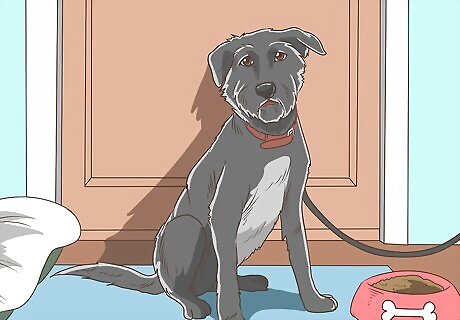 Keep pets near entrances when you leave home. If there’s a fire at your home while you’re away, you’ll want to ensure that your pet is found quickly. When you leave your pets home alone, keep them as close to the front of the house as possible. Dogs are easily contained using baby gates. Cats are more difficult to contain because of their jumping abilities. Place your cats as close to the front of the home as possible and close all the bedroom doors. Additionally, keep collars and leashes on a rack near the entrance of the home in case you need to get your pets out of your home in a hurry. This will also let firefighters know that there are pets in the home, as well as give them a way to safely remove your pets in the event of a fire.