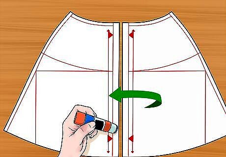 Tape the pattern pieces together. If the patterns are butted up against each other, with no overlap, lay down a long strip of tape across the seam. If the pattern pieces overlap, connect them using a glue stick or strip of double-sided tape. Consider applying another layer of tape across all of the seams on the back of the entire pattern page. This will give it extra stability.