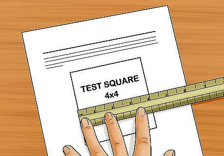 Measure the printed test square, arrow, or bar with a ruler. These items will usually have a measurement printed on them or right next to them. Measure the item with a ruler first, then compare that measurement to what's printed on the page. The measurements need to match up exactly.