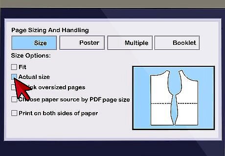 Print the size confirmation. Most patterns will have a 1 to 2-inch (2.54 to 5.08-centimeter) box that you need to print out. You can find this within the first few pages of the document. Find the page that contains this and print it out. Do not print the entire pattern out just yet. Some patterns will have a set of arrows or a black bar instead.