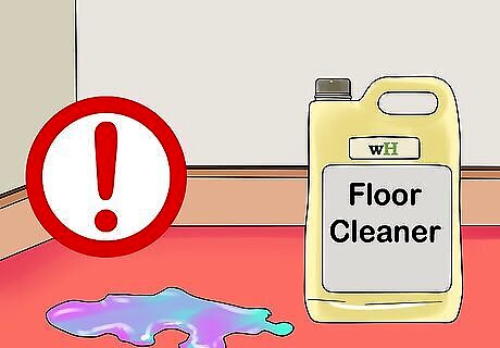Don't allow your dog near chemicals or toxins on the ground. If your dog walks through a toxic substance, it could injure the dog's paw. The dog could also ingest the substance when it licks its paw. For example, floor cleaners can contain chemicals that are hazardous for your dog. When cleaning your floor with a strong chemical, keep your dog out of the area. Also look at the labels on your floor cleaners to make sure they are non-toxic to dogs.
