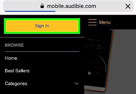 Open the Audible app. It's the app with the orange icon with an image that resembles a book opening. Download and install the Audible app from the App Store iPhone App Store Icon and sign in with your Audible account.