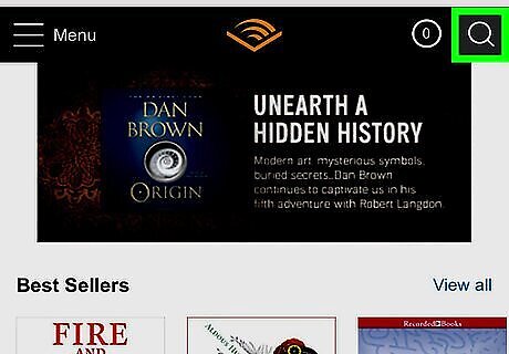 Enter search terms in the search bar. Tap the search bar in the upper-right corner that says "Search for a great book", and type the books title, author, or narrator and then press the "return" key. You can also browse books by category by tapping the "Browse" button, and then tap a category.