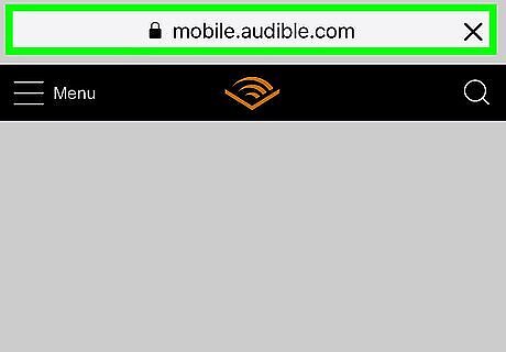 Go to https://www.audible.com/ in a web browser. The Safari web browser is the app with a blue icon that resembles a compass.