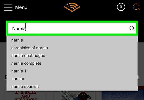 Enter search terms in the search bar. Tap the search bar that says "Search for a good book" and type a book's title, author, or narrator, and then tap the "return" key.