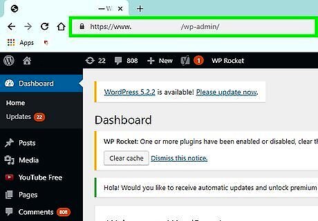Go to your WordPress site dashboard. You can type directly into the address bar “yoursite name.wordpress.com/wp-admin” or “yoursite name.wordpress.org/wp-admin” to get to the dashboard.