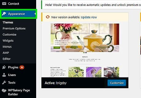 Go to your WordPress site dashboard. You can type directly into the address bar “yoursite name.wordpress.org/wp-admin” to get to the dashboard. This method only works if you have a wordpress.org site. It is highly recommended that before you edit any code you should make a backup.