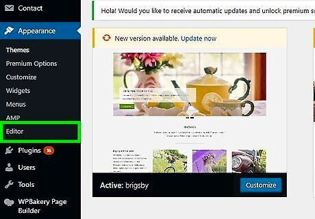 Click Theme Editor. If you don’t see this, your theme’s creator might have disabled this function. “Theme Editor” might also be located somewhere else on your dashboard, but you will have to search to find it.