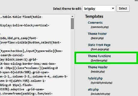 Click Theme Functions. This is also the “function.php” file. You’ll see this in the menu on the right. A page of code will appear to the left.